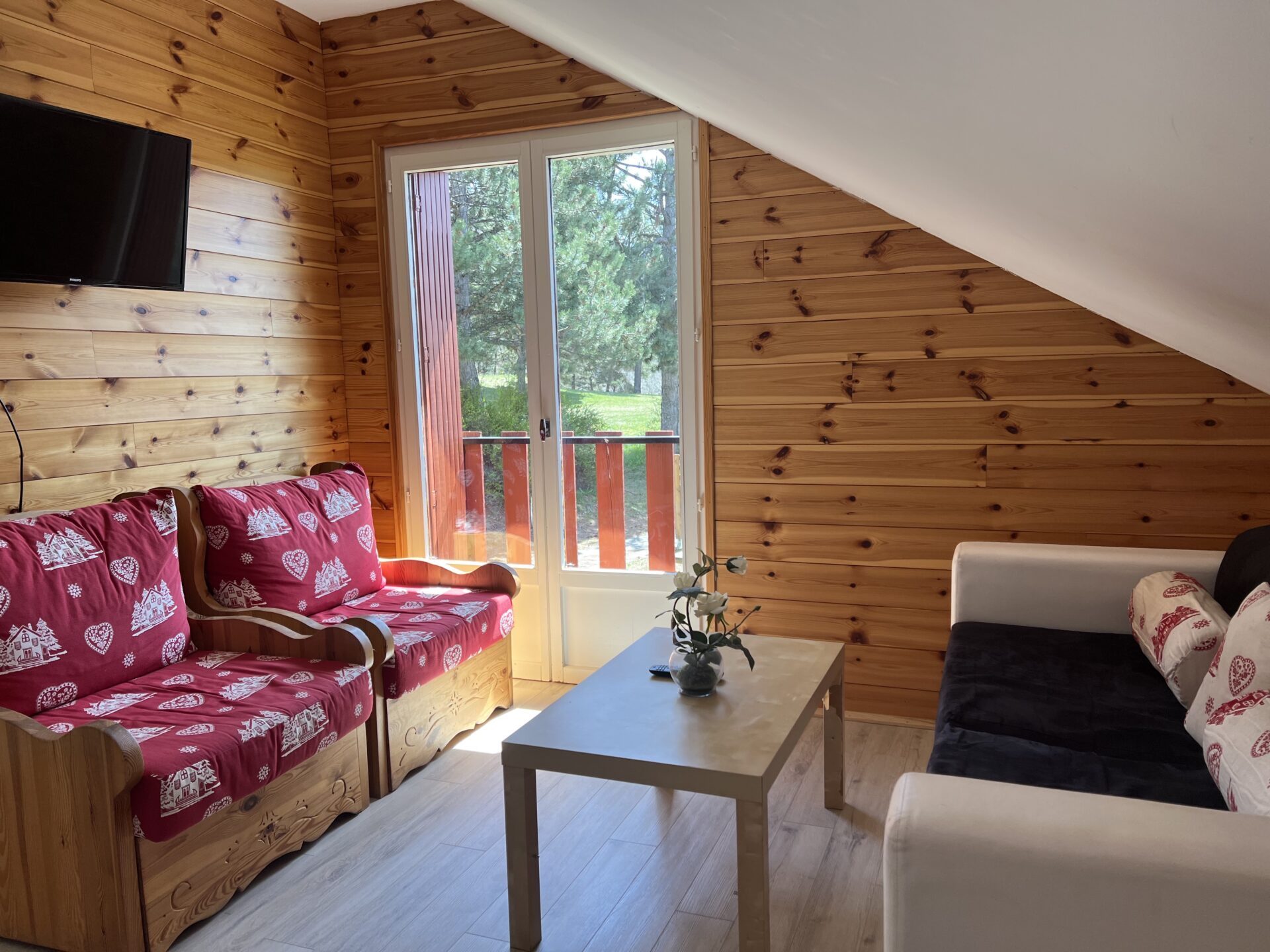 Nos 6 chalets, tous identiques, ont été pensés pour vous offrir le même confort et la même atmosphère chaleureuse, afin que chacun puisse profiter pleinement d’un séjour doux et ressourçant à la montagne.